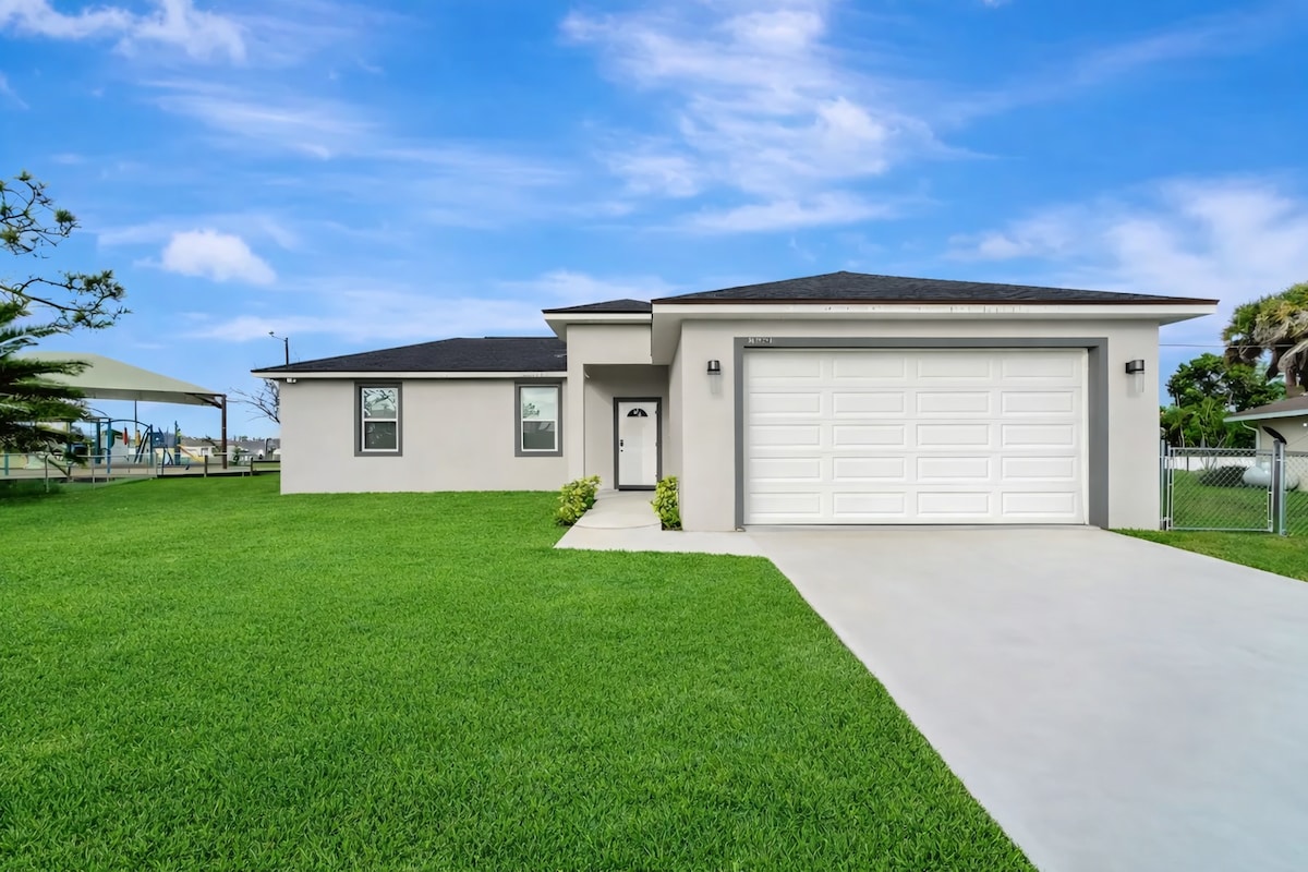 Welkom bij ons thuis! Het is ons een genoegen je te ontvangen. Modern nieuwbouwhuis met alles erop en eraan. Deze woning is gelegen in een rustige buurt, omgeven door veel volwassen bomen en palmbomen. Gelegen dicht bij alle belangrijke gemakken: winkels, restaurants, entertainment, stranden, warme Mineral Springs, Aquatic Center, enz. Woning is smaakvol ingericht en ingericht om je verblijf onvergetelijk te maken, zodat je kunt genieten van je vakantie en herinneringen kunt maken met familie en vrienden.