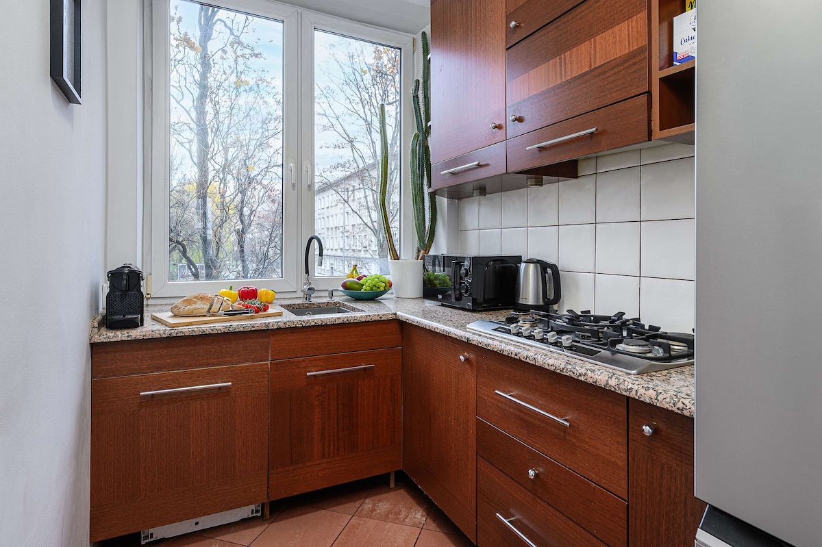 Geweldige locatie voor gasten! Bruisende buurt: Het Paleis van Cultuur en Wetenschap gebouwd in Stalinistische tijden, luidruchtige bars en stijlvolle bistro 's, winkels, musea en recreatieparken. Als je door Nowy Świat Street loopt, bereiken gasten de oude binnenstad. Centraal Station op loopafstand. De beste plek voor toeristen en stadsgasten! Het appartement heeft alles voor een comfortabel verblijf: strijkijzer, beddengoed, handdoeken, servies, kitchenette, tv, wifi, bedden (2+2), wasmachine. Welkom!