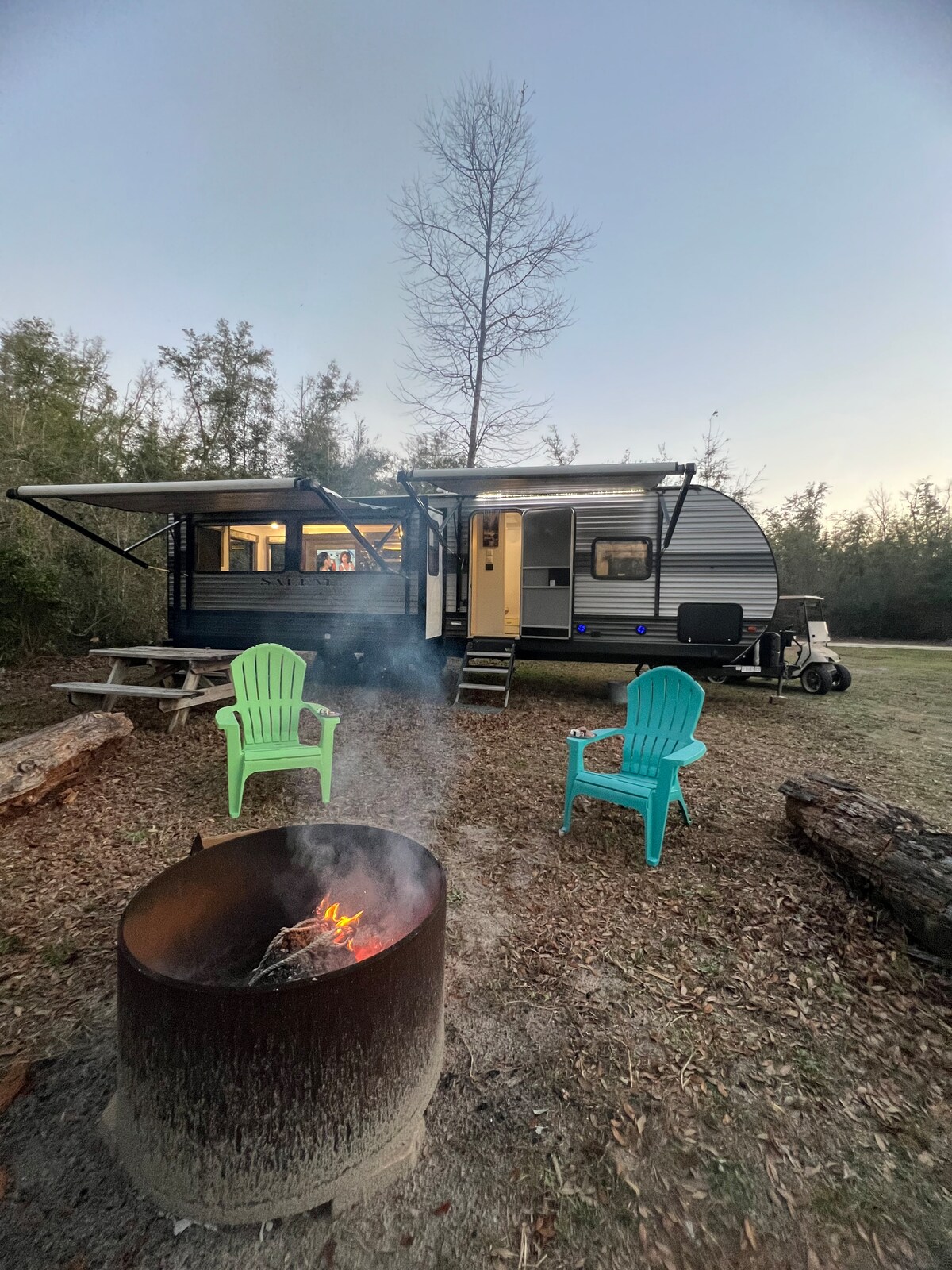The Driftwood Camp Escape to nature and unwind at this unique riverfront retreat on the scenic Econfina Creek. Immerse yourself in the beauty of crystal-clear springs and peaceful waters. This cozy RV includes two kayaks, giving you the perfect opportunity to explore the hidden gems of the creek at your own pace. End your days gathered around the fire pit and grill. Whether you’re seeking adventure or relaxation, this place offers the perfect balance of both creating unforgettable memories.