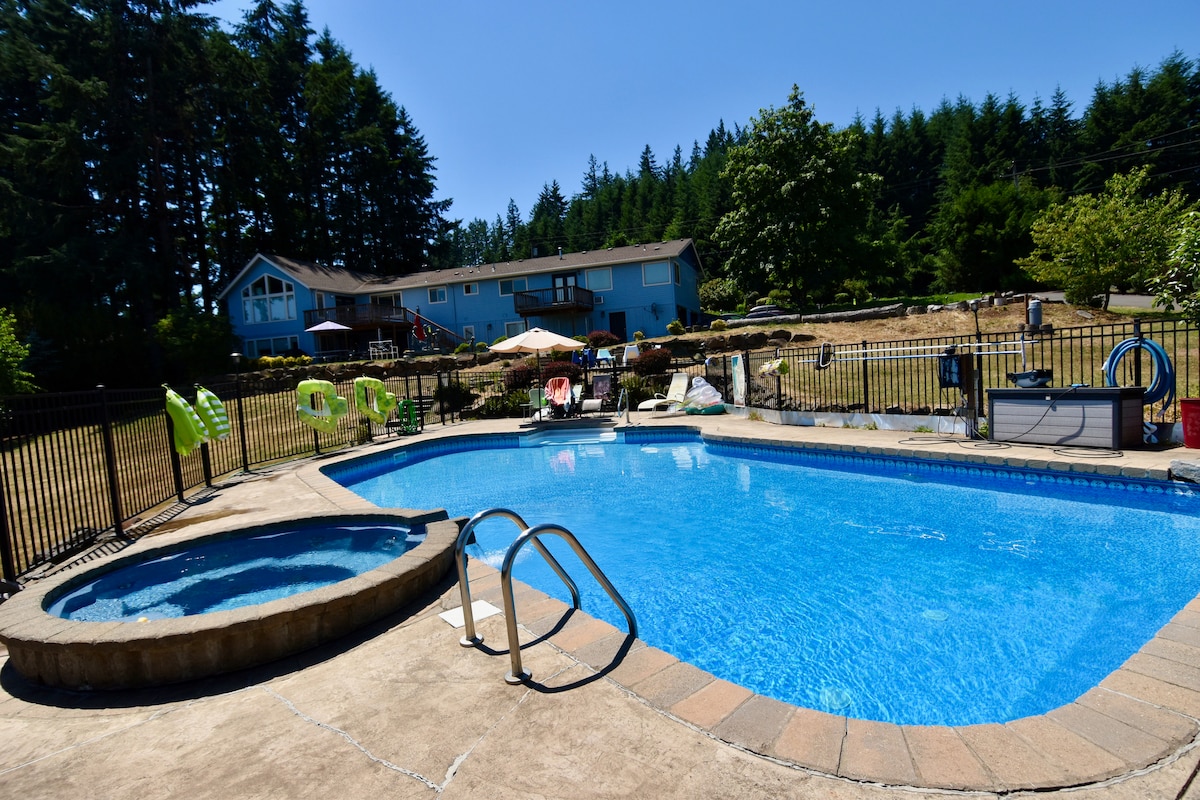 Ontspan in je privépension met een overdekte sauna en Marquis Spa (bubbelbad). Geniet van het zwembad en het hot tub in de buitenlucht. Neem een schommel bij de tee off boxen, chip rond - 2 holes, verken ons terrein van 10 hectare, geniet van het rustige uitzicht op de hazelnootboomgaard, hooivelden en bergen terwijl je achterover leunt, ontspant en verliefd wordt op Oregon Wine Country!