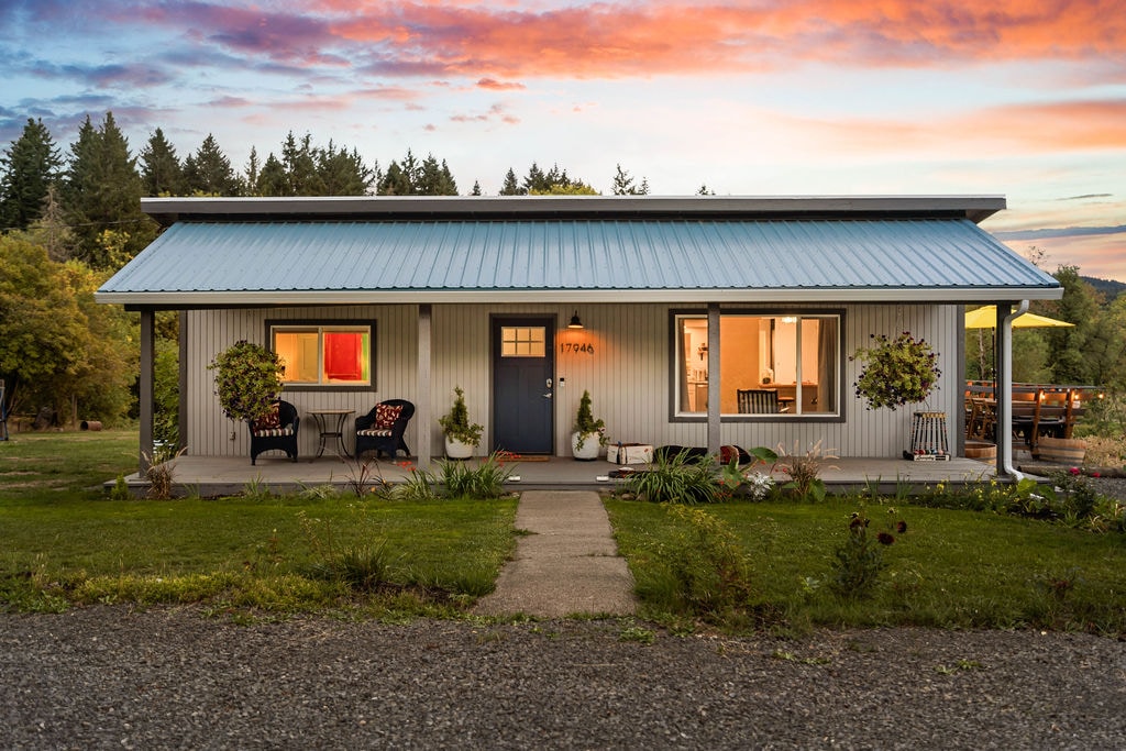 Deze landelijke omgeving van 5 hectare heeft een gastenverblijf van 1 BR, 1 badkamer 1,664 vierkante voet dat gevuld is met veel natuurlijk licht. Uitzicht op het platteland van Scholls Valley, een prachtige lucht, verzorgde tuinen gevuld met meerdere gebieden van gazons, overvloedige bloemen, struiken en bomen. Het ligt op een eigen doodlopende weg. Kom genieten van de rust en stilte en ook dicht bij meerdere wijnproeverijen, de luxe Allison Inn en Spa, oceaanstranden en nog veel meer!