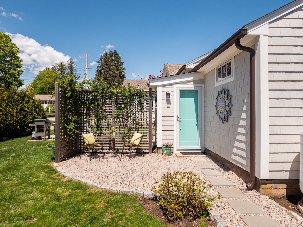 Gehecht aan een gezinswoning, maar met een eigen privéruimte - inclusief een eigen ingang, een speciale parkeerplaats, een klein terras en een gazon met zitplaatsen - ligt deze zonnige studio in het beloopbare hart van Wakefield, in de buurt van URI, stranden, Newport, fietspad. Queensize bed; queensize slaapbank; het meest geschikt voor 2 volwassenen (de slaapbank werkt het beste voor kinderen). Koelkast, micro, koffie, grill (geen oven). Allergievriendelijk: gratis en duidelijke wasproducten; geen huisdieren. Zelf inchecken. Automatische korting voor langer verblijf.