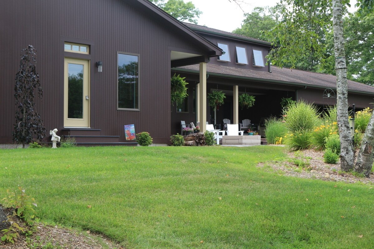 Lager niveau van A-Frame | Buitendouche + vuurplaats