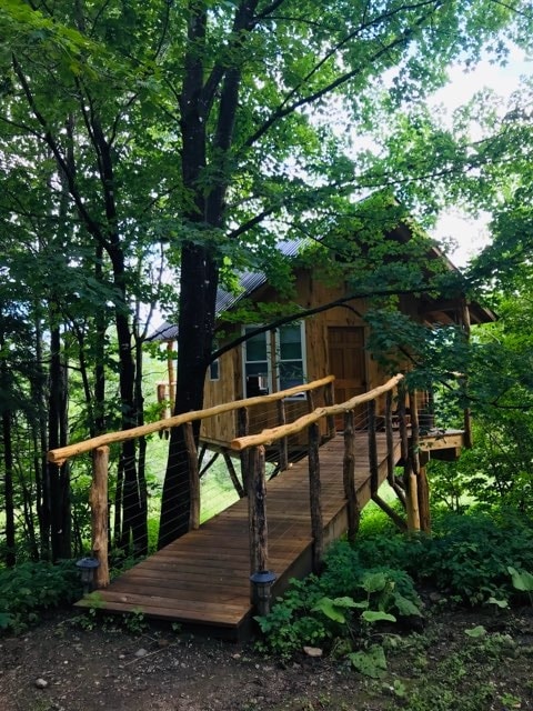 Lilla Rustica is een verhoogde hut tussen de bomen. Privé, met een prachtig uitzicht is dit gebouwd door "The Tree House Guys", een lokaal Vermont-bedrijf dat een seizoen op het DIY-netwerk heeft. Veel details, met behoud van het ontwerp natuurlijk en eenvoudig. Ongelooflijke uitzichten op Camels hump State Park. Een loft met een queensize bed en beneden heeft een queensize bed met drie zijden van het bed met ramen met uitzicht op het uitzicht. Wandelen direct vanuit de hut. Een geweldig uitje!