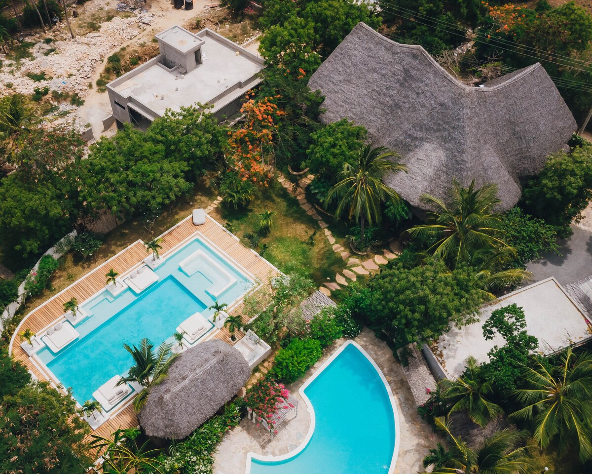 Welcome to your own private tropical paradise in Malindi! Relax in this stunning 5-bedroom villa featuring an open-air living area and a private, refreshing pool. This serene, secluded retreat is perfect for a luxurious getaway. Our 2-person staff is onsite at all times to ensure your stay is seamless and convenient! Enjoy complimentary laundry! *5 bedrooms (each with an ensuite bathroom & AC) *Dedicated workspaces and Wifi *Sun loungers *Massage, and an onsite chef for additional fee! *Pool