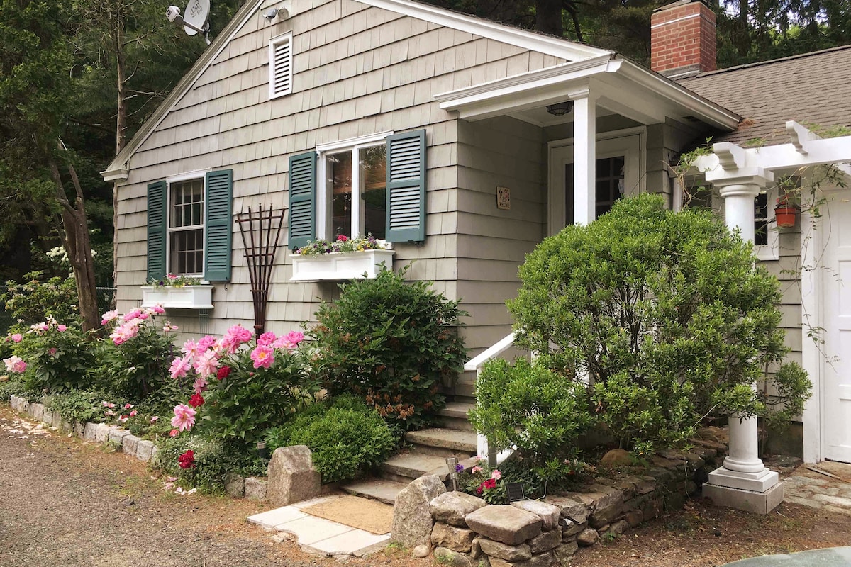 LGBTQ-vriendelijk. De ruime suite van onze Arts & Crafts bungalow uit 1915 biedt parkeergelegenheid op de oprit, een eigen ingang, een serre, een slaapkamer met kingsize bed, een eigen badkamer, een kitchenette met een koelkast, een magnetron, een koffiezetapparaat, een broodrooster. Ontspan in bed met 40inch HDTV met Amazon Prime, HBO Max, Netflix, premium kabel. Geniet van privétuinen om te zonnen, lees een boek of een kopje koffie. Korte rit naar 4 Vineyards, Theater en het treinstation. Ik ben niet verantwoordelijk voor wifi.