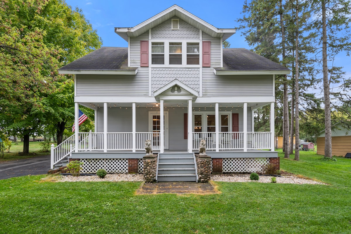 Geniet van een verblijf in het huisje in de grote bossen! De rijstrook die er naar toe leidt slingert een halve mijl terug van de weg. Deze plek zal een hoogtepunt zijn vanwege alles van de ruime tuin omringd door bossen, keuken volledig gevuld met servies, open, gezellige woonkamer en schattige slaapkamers. Het is een gezinsvriendelijke plek, waaronder een tafelvoetbaltafel, bordspellen en speelgoed. Heeft ook een picknicktafel en vuurplaats in de achtertuin (brandhout inbegrepen) of je kunt ervoor kiezen om je favorieten te grillen op de overdekte veranda.