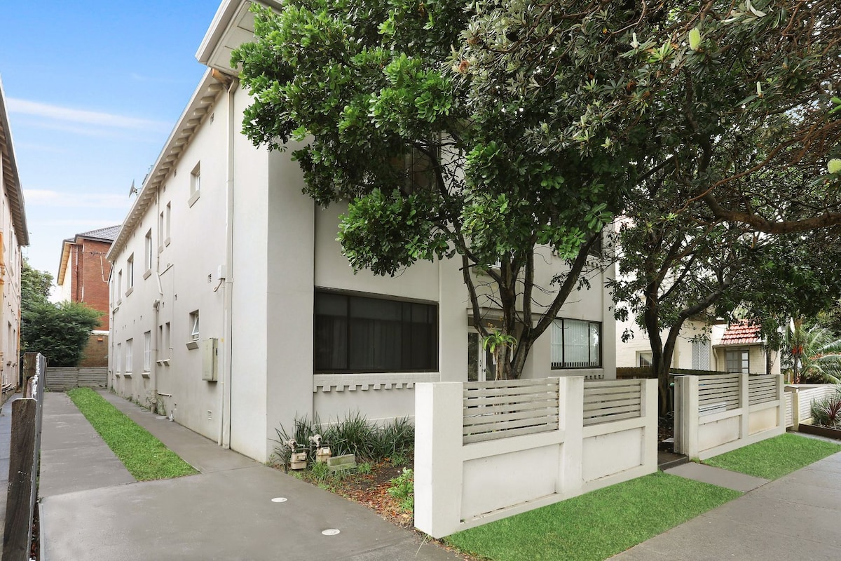 Centraal volledig ingericht appartement met 1 slaapkamer (begane grond), volledig uitgeruste keuken en eigen binnenplaats in een terrashuis. Wij wonen boven. Eigen beveiligde entree. Inchecken 14.00 - 18.00 uur! Gelegen in de prestigieuze Queen St. 20 minuten van het CBD en 20 minuten van Bondi Beach. Geweldige bussen. 1-2 personen. Geen kinderen (0-12). Wifi Smart-tv Lees de ruimte en toegang voor gasten.