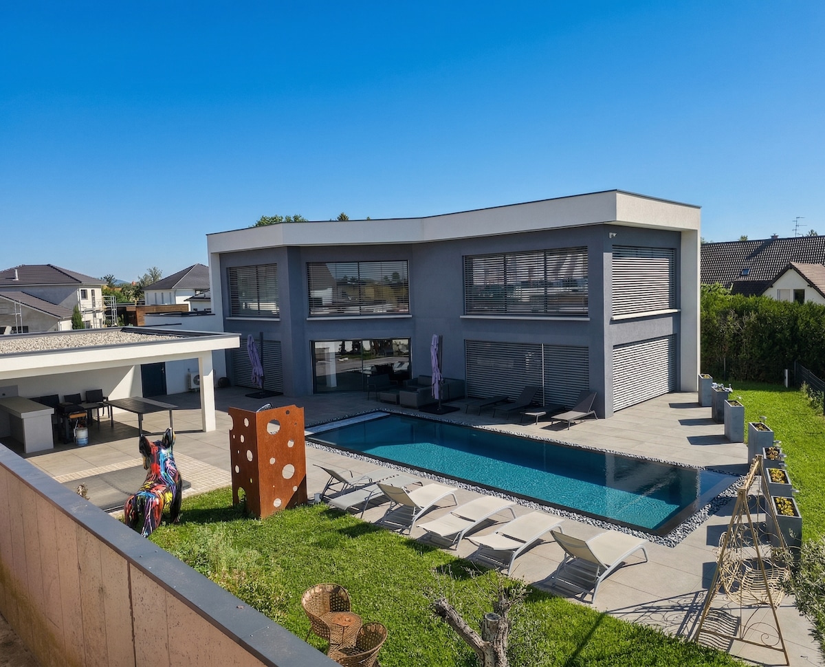 Op minder dan 20 minuten van de luchthaven Colmar, Basel of Basel-Mulhouse en op 1 uur van Straatsburg, biedt La Villa Rixheim 540 m² comfort in een doodlopende straat en niet over het hoofd gezien. Geniet het hele jaar door van een zwembad en jacuzzi. Met 3 slaapkamers, 2 badkamers en een vriendelijke buitenruimte is dit de perfecte plek om samen te komen met familie of vrienden.