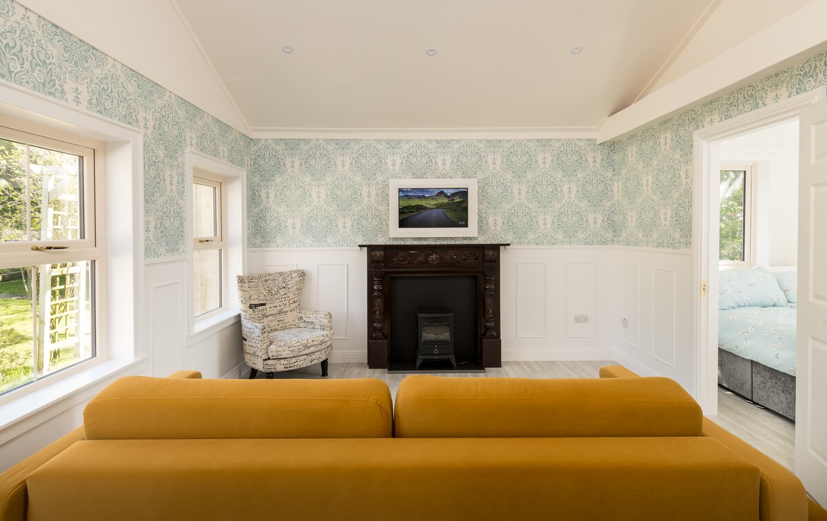 Deze blokhut ligt in een eigen volwassen tuin. Ingericht naar hoge standaard in charmante schilderachtige stijl. Omgeven door een prachtige landelijke omgeving met uitzicht op landbouwgrond en zee in de verte met een voorproefje van de Ierse charme van een stadje. Lokaal dorp ligt op 10 minuten lopen met een geweldige pub met getalenteerde muzikanten op geselecteerde nachten. Wexford-stad ligt op 25 minuten rijden, maar er is een lokale linkbus die 10 keer per dag rijdt tegen een bescheiden vergoeding. Een auto wordt sterk aanbevolen voor je verblijf đ