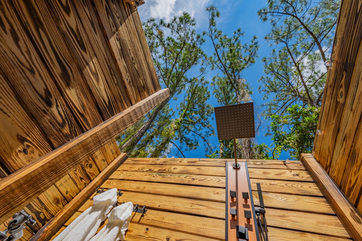 Ever stayed the night in the woods? Cross it off the bucket list with our ‘tiny-house’ style stay near the Hillsborough State Park. Rated #7 on PureWow as one of the 20 Best Airbnb Cabins. This brand new luxury tiny home was thoughtfully crafted to capture the natural beauty of its old Florida virgin forest surroundings. Glamping at its finest with the best modern conveniences like a full gourmet kitchen, spa like shower, 1G FiberWi-Fi Internet, TV, and a super quiet Mini SplitAC & Heating.