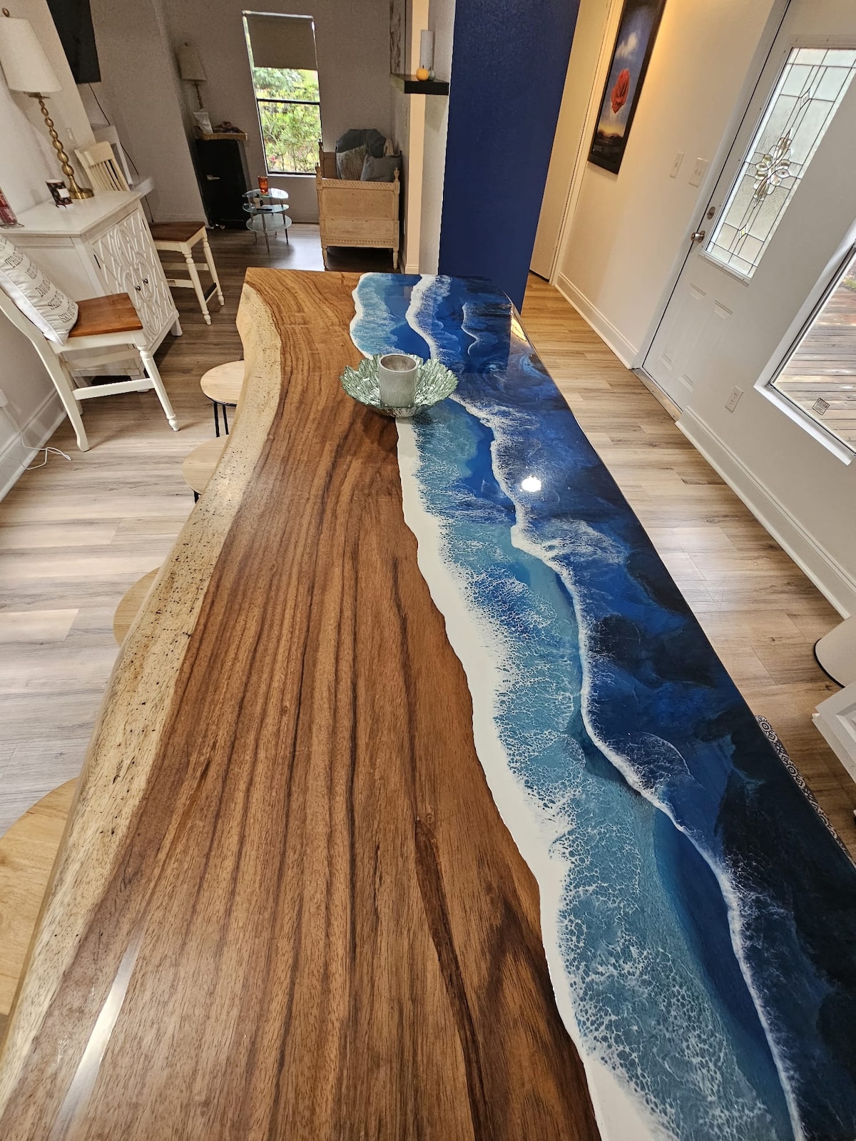 Kick back and relax in this calm, stylish space, with relaxing views of the lake, with the bonus of a unique modern Moroccan-style salon. Our two-bedroom / two-bathroom condo is surrounded by trees, and windows throughout, helping you to relax and enjoy nature. The Moroccan salon serves as an additional space to watch the game on the 80" TV or move the cushions and the two large seating areas convert into a wonderful twin-size, sleeping space that accommodates two additional people.