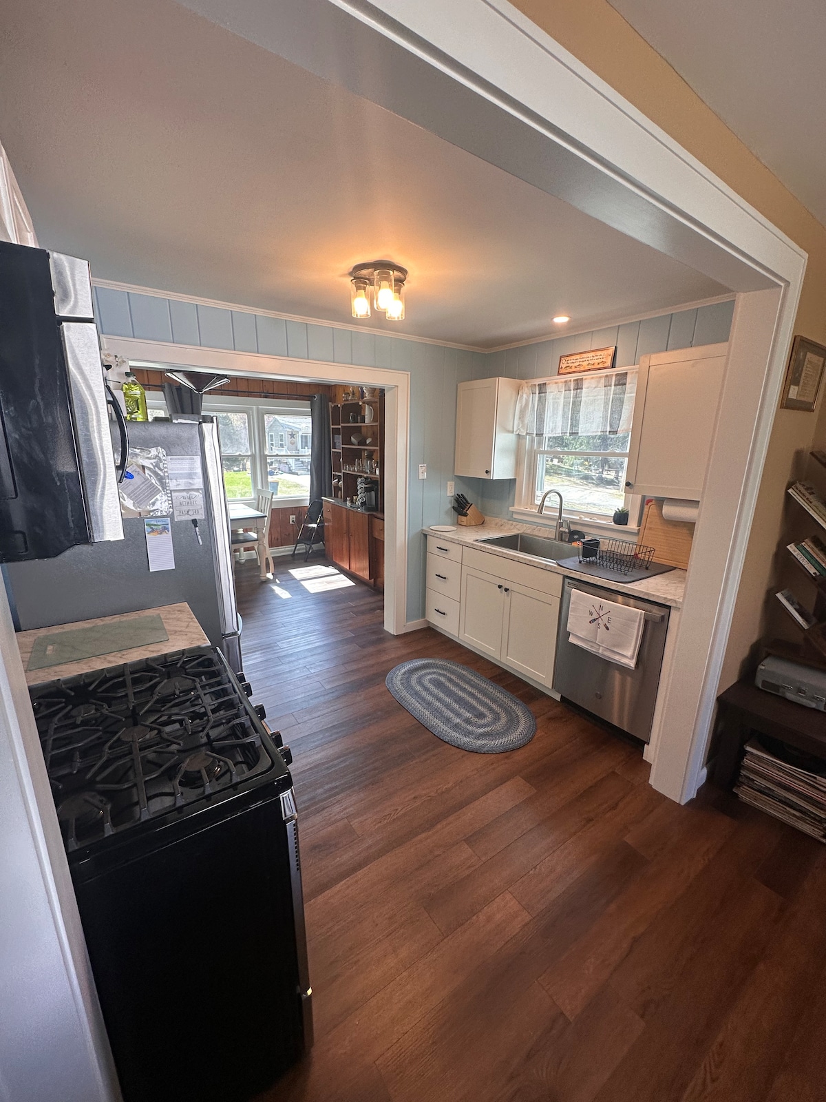 Laat al je zorgen vervagen in dit prachtig gerenoveerde moderne huisje! Ons bad met 3 slaapkamers en 2 badkamers biedt plaats aan 8 volwassenen in 2 queensize bedden, twee eenpersoonsbedden en een queensize slaapbank. Ontspan bij de vuurplaats of haal onze kajaks voor twee personen uit en geniet van het meer in de zomer, bezoek Catamount Ski Resort of andere nabijgelegen skigebieden in de winter. De grote, aangepaste eettafel biedt comfortabel plaats aan 8 personen met veel ruimte om op te hangen, spelletjes te spelen, films te kijken en meer. Gasten moeten 25 jaar oud zijn om te huren.