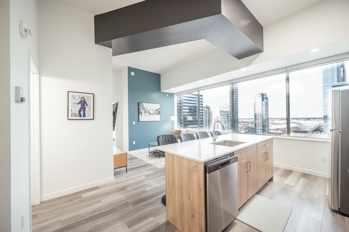 Ervaar het leven in het centrum met een ongeëvenaard uitzicht! ✔ 5 minuten lopen van Rogers Place ✔ Beveiligd ondergrondse parkeergelegenheid ✔ Volledig gevulde keuken ✔ 2 queensize bedden en 2 volledige badkamers ✔ Snelle wifi Fitnessruimte ✔ op locatie ✔ In-suite wasserij ✔ 55" Smart TV ✔ Dicht bij de beste restaurants en uitgaansgelegenheden Zithoek ✔ buiten met barbecues ✔ Lounge/evenementenruimte beschikbaar in het gebouw ✔ Veel natuurlijke verlichting ✔ Gratis koffie ✔ Gratis shampoos ✔ Jaloezieën op elk raam
