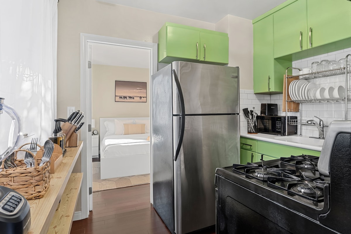 Unwind in style in this bright, comfortable West Hollywood guest suite. Relax outside near the rose garden or inside in the Old Hollywood-inspired bathroom. Plum and gray hues mix throughout to create a truly modern oasis. This 1 bedroom-1 bathroom Craftsman guest suite is centrally located in one of the safest and most pedestrian-friendly neighborhoods of LA. First class amenities in this professionally decorated unit include granite counters, hardwood floors, and stainless steel appliances.
