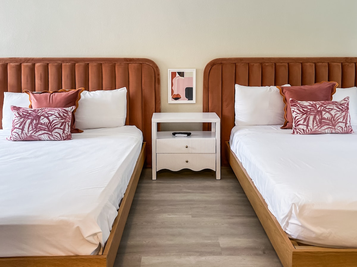 Ervaar een verhoogd verblijf in onze ruime Metro-suite met één slaapkamer in het Jaxon Hotel. Met een pluche queensize bed, een moderne kitchenette en een aparte woonkamer met een queensize uitschuifbare bank, is het perfect voor gezinsreizen, zaken of langere verblijven. Ontspan in stijl en geniet van de perfecte mix van ruimte en gemak - allemaal op slechts enkele minuten van Palm Beach Island, het congrescentrum en de beste eetgelegenheden in West Palm Beach.