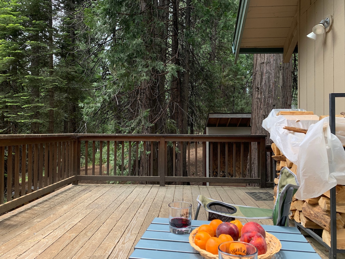 Idyllic Forest Cabin Getaway. Fully furnished 1 bedroom, 1 bathroom home in Amador Pines, CA. Our home is a secluded retreat driveable to Amador and Shenandoah Valley Wineries, located 35 minutes from Kirkwood ski resort. Fully remodeled cabin among the pines with an upgraded kitchen and bathroom. Large beautiful deck with views of sunset. Wildflower views during the summer! Great for a getaway with (or without) the whole family!
