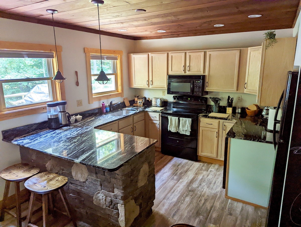 Prachtig moderne boerderij gelegen in Champion, PA, op slechts enkele minuten van 7 Springs Gerenoveerd en professioneel ingericht van boven naar beneden, deze woning beschikt over 3 slaapkamers (master heeft een kingsize bed, tweede heeft een queensize bed en een derde vrijstaande slaapkamer als aparte gastensuite met queensize bed en queen pull out), keuken met graniet en roestvrij, open haard, airco, groot dek. De woning ligt op 2 zeer privé hectare met bos aan alle kanten en een beek die door de achtertuin loopt. Een klein eindje rijden naar het resort.