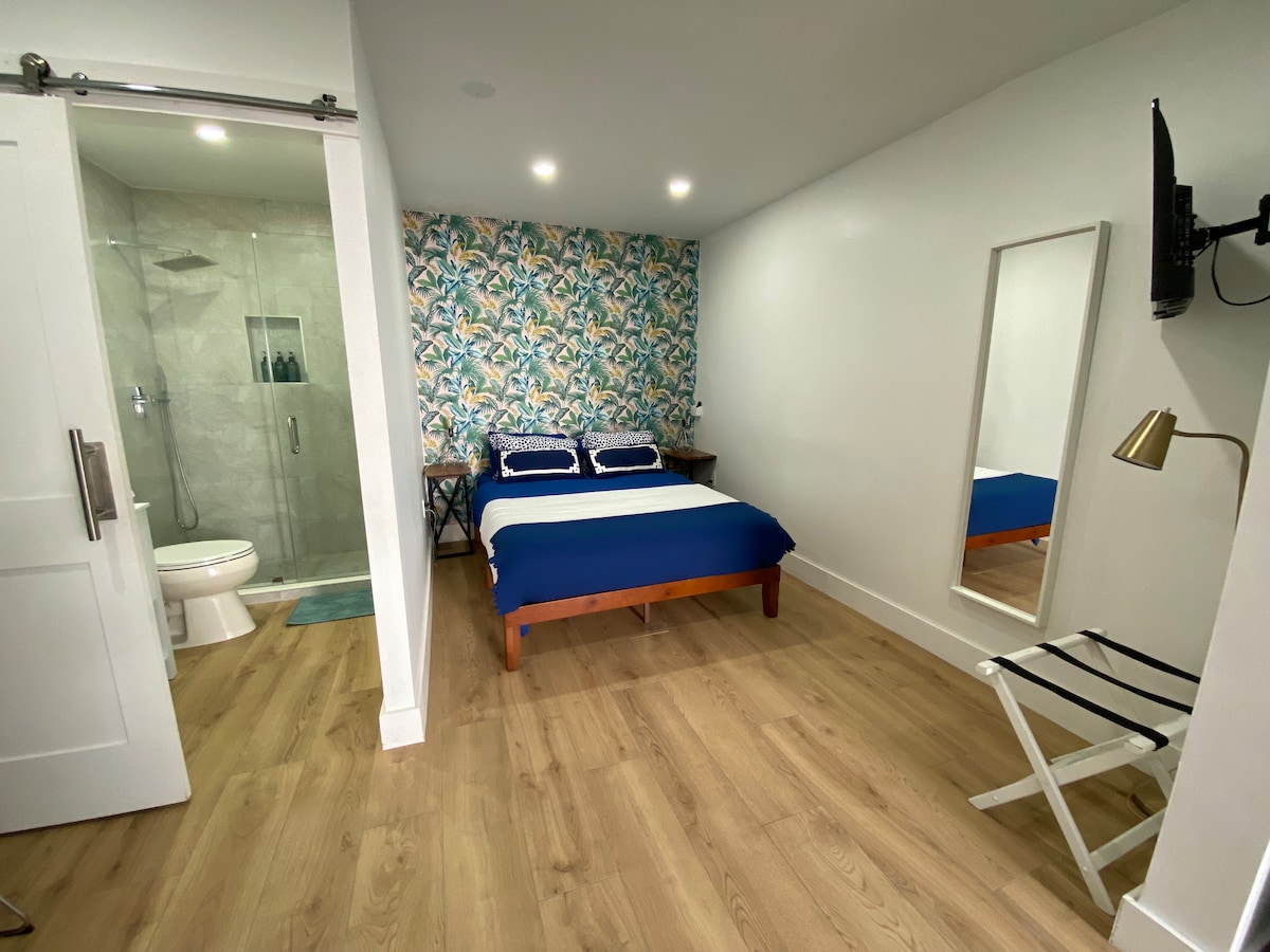 DE RUIMTE IS NIET GESCHIKT VOOR KINDEREN, HUISDIEREN OF MEER DAN 2 PERSONEN. Gastensuite met eigen ingang, gelegen aan de voorkant van het hoofdhuis met een mini-keuken, complete badkamer. PARKEREN in omheinde tuin. 5 minuten naar Artsy Wynwood/Design District , 10 minuten naar MIA Airport, 20 minuten naar South Beach/Key Biscayne, C Grove... Centrale airco, WIFI, smart-tv, queensize bed, beddengoed/handdoeken. Mini-koelkast, magnetron,koffiezetapparaat. VANWEGE EERDERE PROBLEMEN STAAN WE PAKKETTEN NIET TOE DIE OP ONS ADRES WORDEN AFGELEVERD