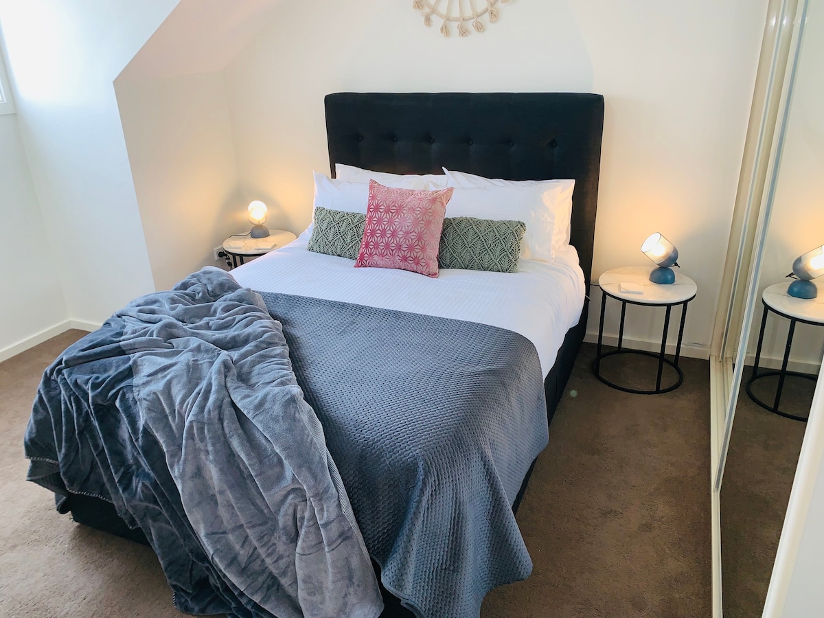 Luxe gemeubileerd herenhuis met 3 bedden, airconditioning. Geschikt voor zes gasten. Perfect voor lange of korte verblijven. 1 kingsize bed, twee luxe queensize bedden. Volledig uitgeruste keuken met Europese apparaten, thee en koffie, op 2 minuten van een winkelcentrum Westfields. Restaurants en cafés binnen handbereik. 5 minuten rijden naar M4 & M7. Gratis parkeren buiten de straat, dicht bij alle openbaar vervoer. 45 minuten van Sydney Airport en CBD. 4 minuten rijden of 15 min lopen naar het treinstation van St Mary. 20 min rijden naar de Blue Mountains.