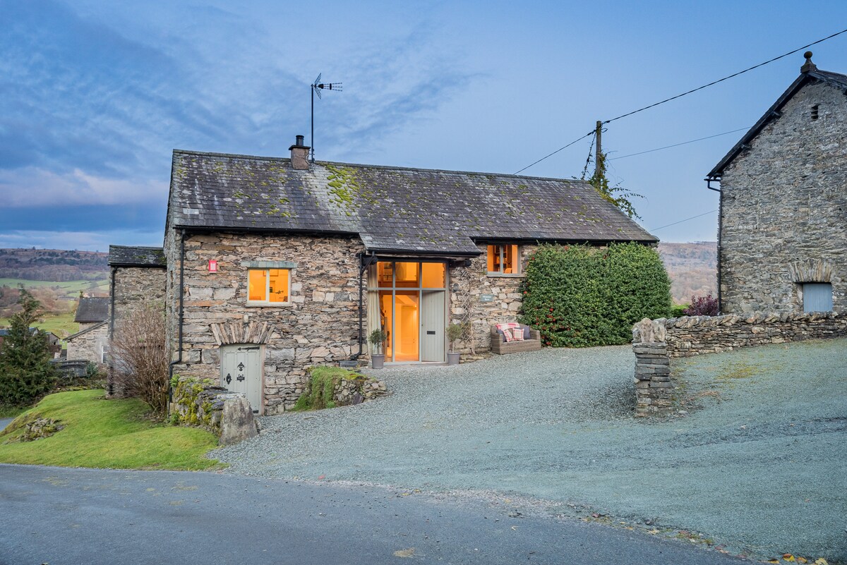 A romantic, stylish and cosy cottage for two in the beautiful Lake District National Park, half a mile from the shores of Lake Windermere and a 20 minute drive from Junction 36 of the M6. We are dog friendly. Our 250 year old cottage features modern rustic decor, u/f heating, log burner, super-fast internet, Smart TV, Sonos sound system and a complimentary podPoint 7kw EV charger. There are many wonderful walks and bike rides available from the front door. Stays start Mondays or Fridays.