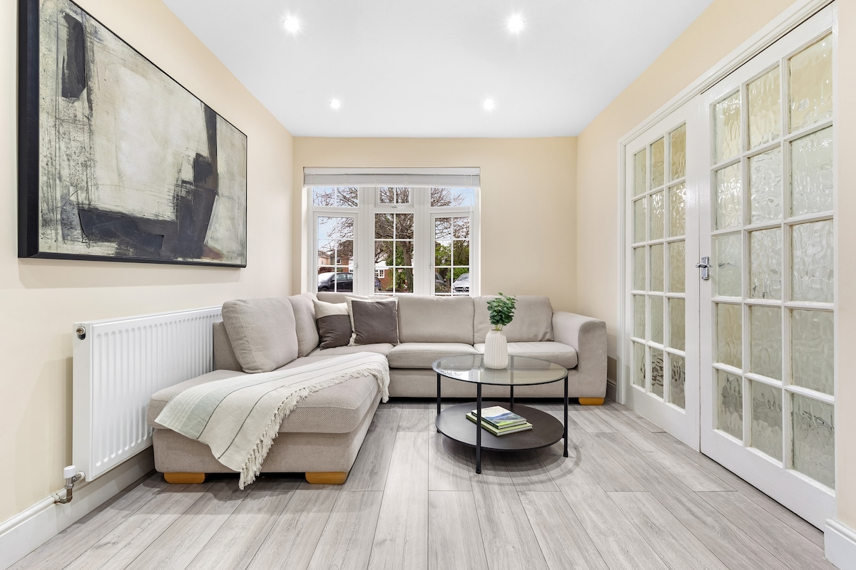 Welkom bij Charming 3BR Home in Twickenham, gehost door Elev8 Stays! Deze gezellige accommodatie ligt in het begeerde TW2-gebied en biedt gemakkelijke toegang tot lokale winkels, cafés en vervoersverbindingen. ✓ High-speed internet ✓ Fantastische centrale locatie ✓ Perfect voor gezinnen en kleine groepen ✓ Geschikt voor maximaal zes personen ✓ Smart-tv met streamingopties ✓ Volledig uitgeruste keuken ✓ Gratis parkeren beschikbaar ✓ Verbeterde schoonmaakprotocollen
