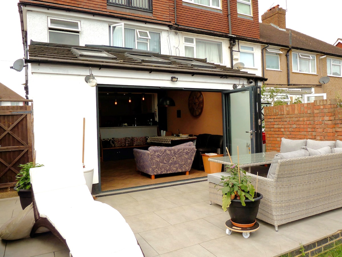 Comfortabel, onlangs gerenoveerd appartement, met gratis off-road parkeren voor 1 auto (+ gratis parkeren op de weg), grote privétuin en snelle toegang tot Londen met treinstation op minder dan 10 minuten lopen. Rust goed uit op de kingsize en volledige eenpersoonsbedden. De keuken is volledig uitgerust en een grote comfortabele woonkamer/eetkamer met volledig Sky-pakket. De hoofdstraat ligt op slechts 4 minuten lopen met koffiehuizen, bakkerijen, boodschappen, restaurants en cafés. Eenvoudig ontbijt voor de eerste 2 nachten (eieren, brood, melk)