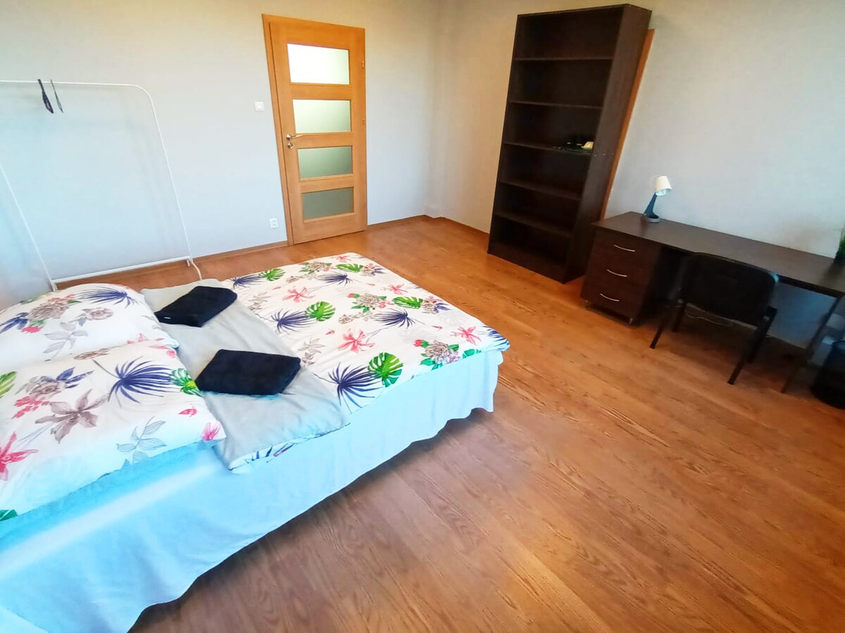 Wij bieden een prachtig driekamerappartement op een rustige en vredige woonwijk in Zielona Góra. Wij bieden een woonkamer, slaapkamer en logeerkamer. Het appartement heeft een volledig uitgeruste keuken, badkamer met douche en toilet. Het is uitgerust met twee werkruimtes (bureaus met stoelen) en internettoegang (1 Gbps). De woonkamer heeft een uitklapbare tafel voor maximaal 6 personen, een grote tv met kabel-tv en een boekenplank. Het appartement is comfortabel geschikt voor 5 personen.