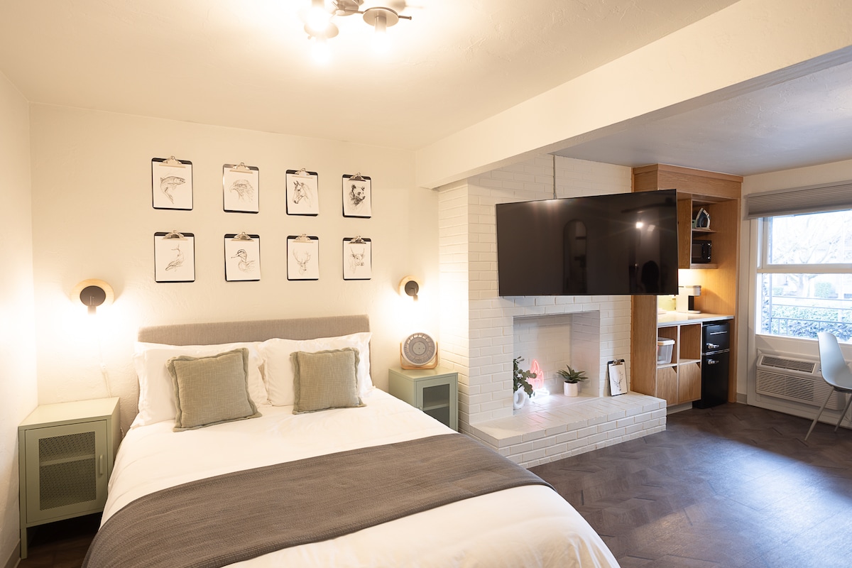 Nieuw! Boutique Motel - The Stylish Fireside Queen