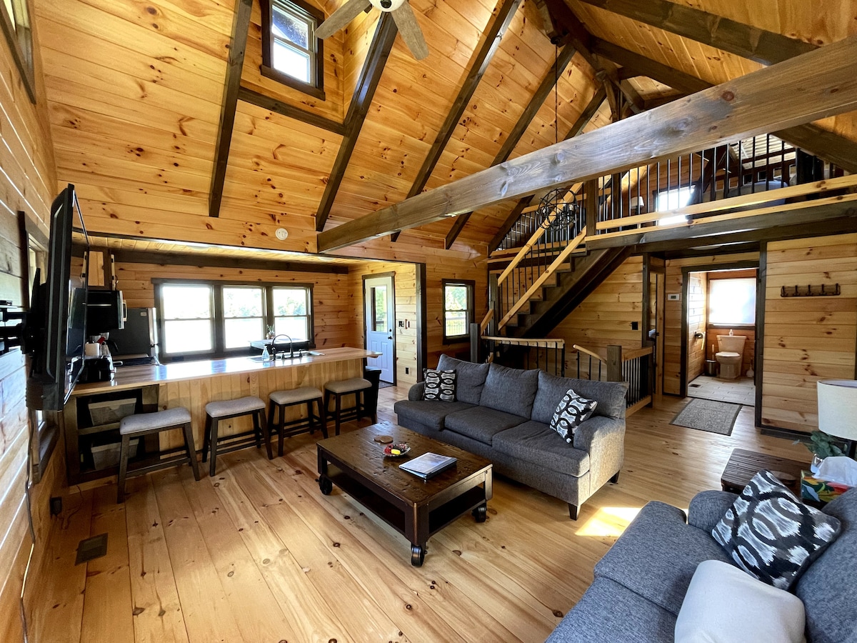 Welkom bij Cole Creek Acres, je eigen huisje aan het meer. Deze ruime door Amish gebouwde lodge ligt naast een 18 hectare groot met bronwater gevoed meer en wordt omgeven door bossen en open ruimte. Het is perfect voor gezinnen en vrienden om te ontspannen, opnieuw contact te maken en herinneringen te maken. Breng je dagen door met vissen, kajakken, zwemmen of loungen aan het water en ontspan vervolgens in de hot tub bij zonsondergang. Comfortabel voor maximaal 10 personen met alle moderne voorzieningen, plus een eigen strand en vuurplaats, perfect voor uitstapjes het hele jaar door.
