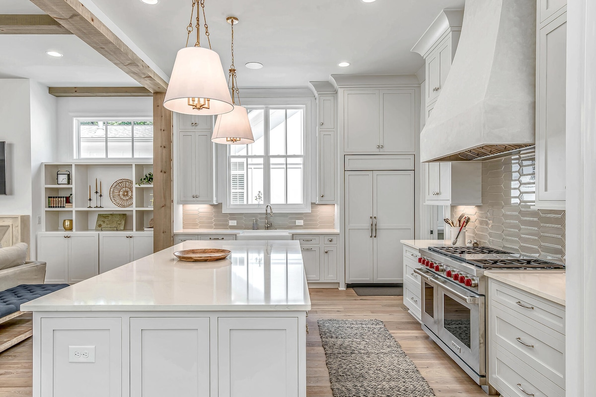 Ruime woning, beschikt over nieuwe comfortabele bedden en zacht beddengoed. Master BR en-suite bad, 5 flatscreens, snelle wifi, Hulu TV, Bose Mini Speaker, FP, volledig uitgeruste keuken met Caraway Cookware, wafelijzer en biologische koffiepads. Grill en geniet van de enorme afgeschermde veranda met een tweepersoons zuidelijke bedschommel. Hang bij de vuurplaats in Adirondack-stoelen. Kinderen houden van de bandschommel en de omheinde achtertuin. Een mijl naar winkels en eetgelegenheden. Geweldige ruimte voor familie- of zakenreizen. Toegewijd aan uitmuntendheid.