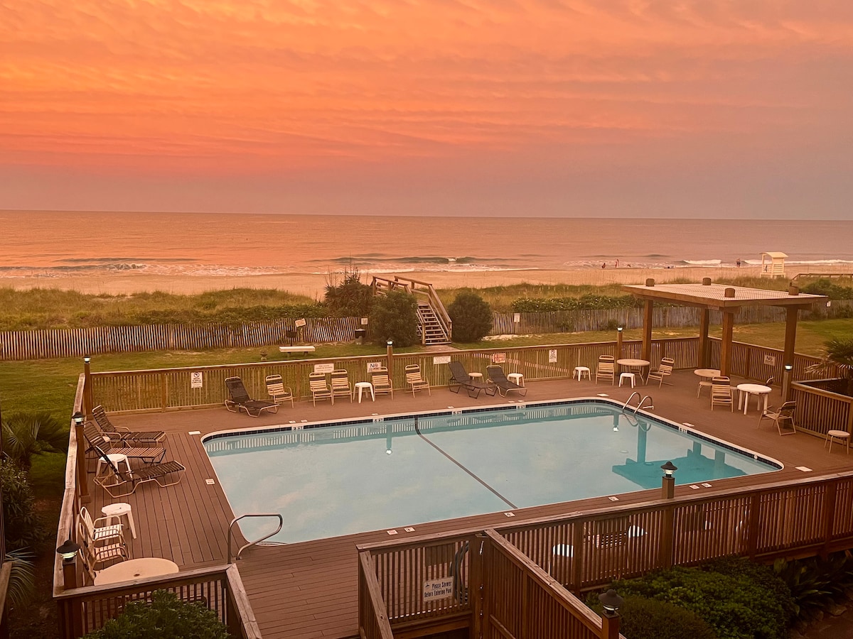 Peach on the Beach is een modern en onlangs gerenoveerd appartement met één slaapkamer, met een ruime open woonkamer/keuken. Dit is een hoekunit met een adembenemend uitzicht met toegang tot een groot overdekt terras aan de oceaan. Slechts 2 minuten lopen naar het strand. Perfecte locatie voor de liefhebbers van zonsopgang en zonsondergang! Geniet van de zonsopgang van de oceaan vanaf het dek of strand en direct aan de overkant van de straat bij het Fort Fisher Air Force Recreational Center zijn de beste zonsondergangen op de rivier.