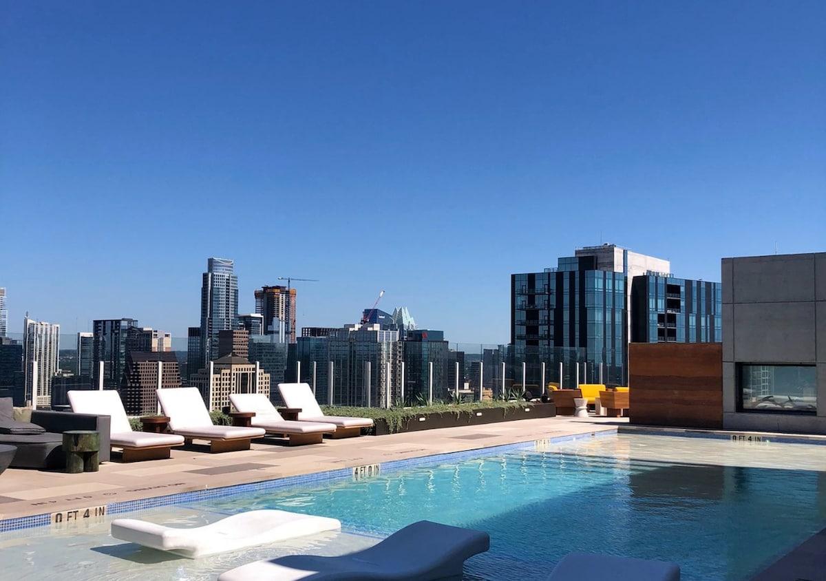 Mooi zwembad op het dak, op steenworp afstand van Rainey St