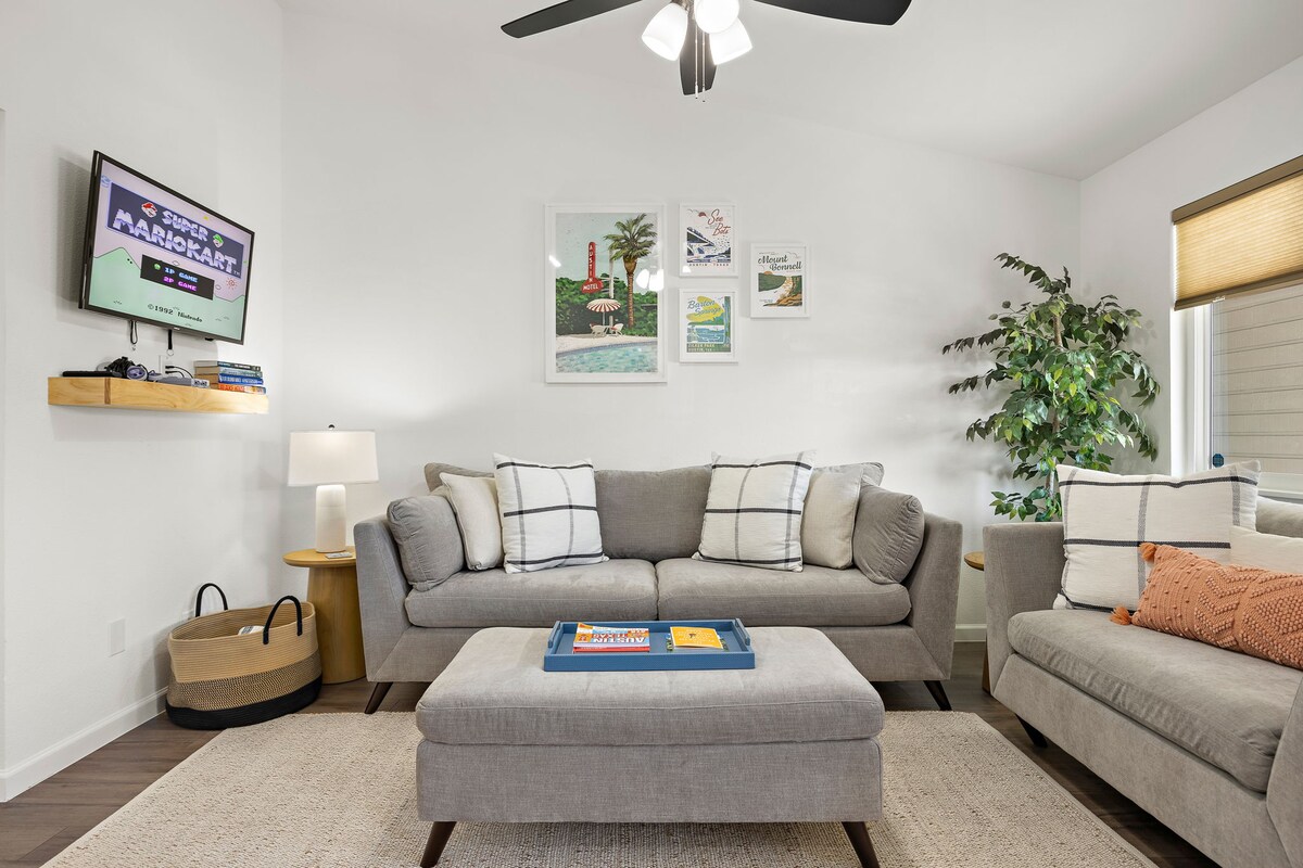 Ontsnap naar een rustige buurt van het centrum van Austin met dit ruime en onlangs gerenoveerde appartement in een rustig, laag gebouw. Hoogtepunten zijn *één gratis omheinde/gereserveerde parkeerplaats*, *twee gratis fietsen*, hoogwaardige apparatuur, een eigen patio en een comfortabele slaapkamer met een kingsize bed. Een queensize slaapbank zorgt ervoor dat dit appartement vier personen kan slapen. De badkamer is toegankelijk vanuit de slaapkamer en de woonkamer, waardoor de slaapkamer privé blijft. Twee grote smart-tv's zijn klaar om te streamen. Blijf, ontspan, geniet ervan!
