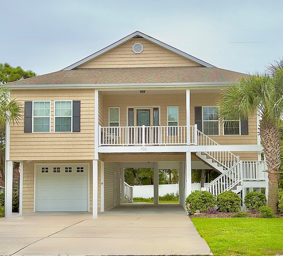 Beautiful, newly renovated 4-bedroom raised beach house only 2 blocks from the ocean. Plenty of room for outdoor entertainment with a large pool area surrounded by palms and access to a salt marsh for fishing. Only moments away from Barefoot Landing shopping, golf, and nightly entertainment. In consideration of younger guests, younger than 25, a dep $1500 will be required before check-in and 2 prof references sent directly to gkladd@comcast.net from nonrelatives older than 25 years of age.