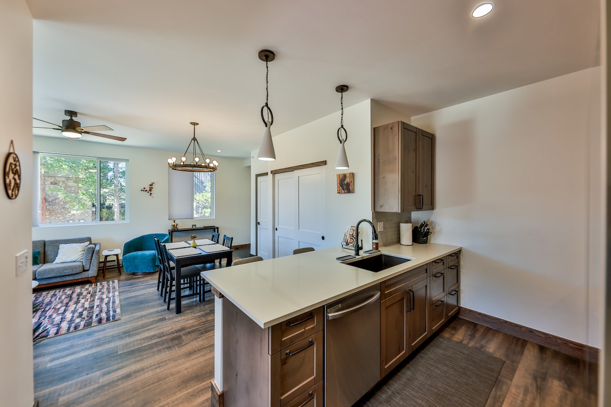 Modern rustic condo nestled in the heart of Winter Park, CO. Completely remodeled, this charming retreat combines contemporary comfort with mountain elegance. The condo sleeps 9 comfortably with 3 cozy bedrooms, 2 full bathrooms, a fully-equipped kitchen with stainless steel appliances, and a warm living room area, perfect for relaxing after a day of mountain adventures. Enjoy easy access to local shops, dining, Lyft bus stop, and the resort. Ideal for families seeking a serene mountain getaway