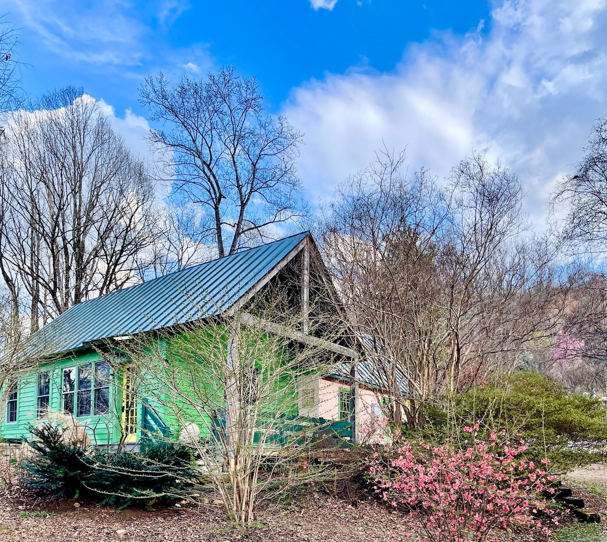 Relax and unwind in this fabulous handcrafted cottage— every detail has been considered! Beautiful mountain setting on small, historical farm just off Blue Ridge Parkway, the heart of Virginia wine country. Deep, hand-built cedar hot-tub. Minutes to the Appalachian Trail and Wintergreen resort. An easy walk to public trails, Devil's Backbone Brewery and Bold Rock Cidery. Beautiful gardens, hammocks, featured in design blogs. High-speed fiber internet. Library. Hens. Miniature Goats. EV Charger.