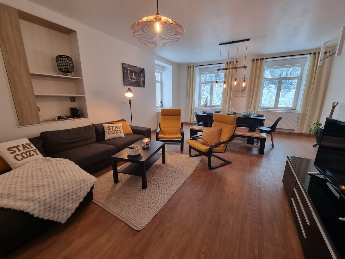 ✨ Een cocon in het hart van de natuur Hier strekt de tijd zich uit naar het ritme van de wind in de bomen. Het huisje nodigt je uit om te vertragen, van het moment te genieten en naar de stilte te luisteren... soms gestoord door een nieuwsgierig hert aan de rand van het bos. Op het terras omhult een rookende spa je met uitzicht op het rustgevende landschap. Binnen vormen zacht licht, natuurlijk hout en zacht beddengoed een comfortabele retraite. Een toevluchtsoord om weer in contact te komen met de essentiële dingen... en met jezelf. 🌲💫