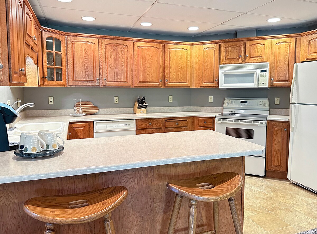 Queensize bed en slaapbank in gemeenschappelijke ruimte + queensize bed op een loft, anderhalve badkamer + keuken. Gelegen op 10 minuten van Wausau, WI. Je kunt gebruikmaken van de beste gedeelde voorzieningen: - Het grootste zwembad en bubbelbad in de Wausau-markt - Een extra groot fitnesscentrum - Een gezellige binnenplaats, bar en Italiaans-Amerikaans restaurant - Bestel eten en drinken direct op je kamer, of geniet ervan in onze gastvrije bar en eetruimte. Onze receptie is 24/7 beschikbaar om je te helpen het meeste uit je verblijf te halen.