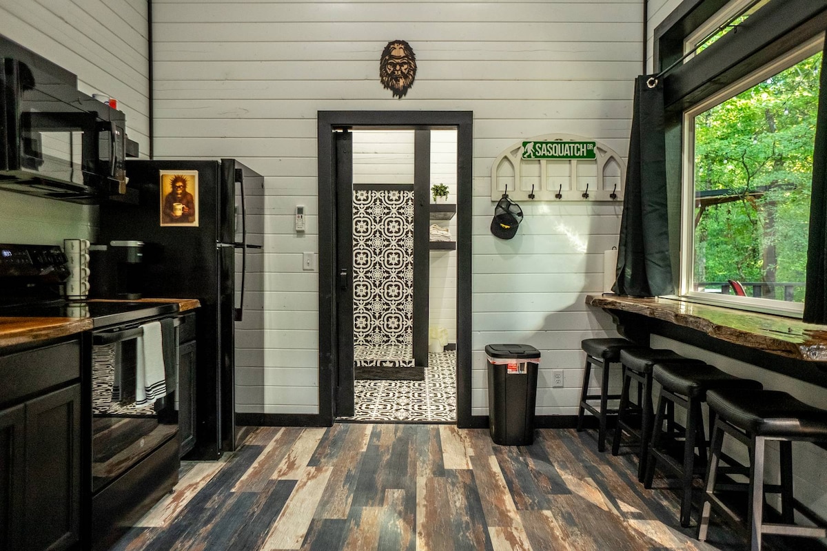 Welkom bij de Sasquatch Soak Shack, een gezellige en speelse hut verscholen in de bossen waar comfort en avontuur samenkomen. Kijk hoe herten voorbij dwalen terwijl je ontspant in de outdoor klauwbadkuipen voor hem en haar of in het bubbelbad op de grote veranda met uitzicht op het bos. Geniet binnen van rustieke charme met leuke Sasquatch-thema's die je verblijf onvergetelijk maken. Voor buitenliefhebbers liggen de Wolf Pen Gap-paden op slechts enkele minuten afstand en bieden eindeloze mogelijkheden om te rijden en de Ouachita Mountains te verkennen.