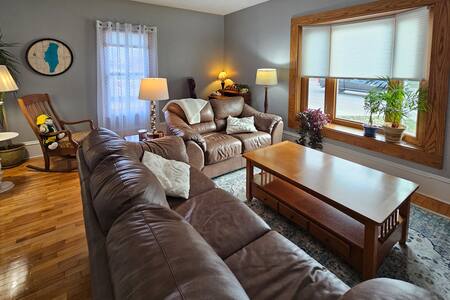Ontspan en geniet in een prachtig schilderachtig huis gunstig gelegen in een rustige beboste buurt in Appleton. Het heeft alle elementen van het zijn van je weg van huis. Bijna 3000 vierkante voet. Gasten kunnen gebruikmaken van alle woonruimtes, een moderne keuken, een volledig gemetselde open haard, gewelfde plafonds, een groot terras en een hot tub. Geniet van de achtertuin met een ruim dek, een 7 persoons hot tub en een buitenvuurplaats. Vijf minuten van de luchthaven, het centrum, 25 minuten van Lambeau en 20 minuten van EAA. Inclusief koffie en ontbijt.