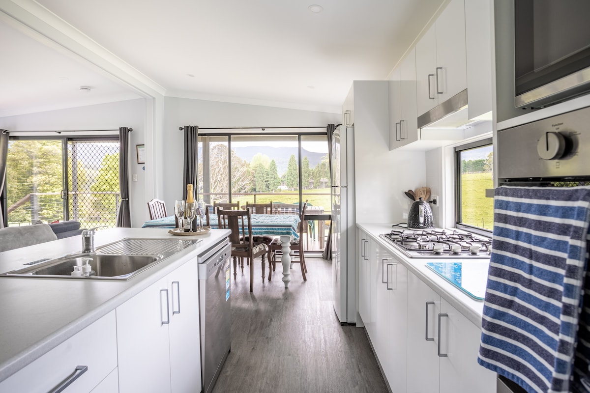 Een prachtig ontworpen architectenwoning met een prachtig uitzicht op de kliffen, beoordeeld met 4,98 sterren door meer dan 200 gasten en een Favoriet van gasten op Airbnb. Geschikt voor 5 personen in 2 slaapkamers – elk met een eigen badkamer – plus een derde badkamer, een vuurplaats, een barbecueplatform en een achtertuin waar dagelijks kangoeroes langskomen. Inclusief wifi van 81 Mbps en een speciale werkruimte. 100 m naar het dorp. Gemeenschappelijk zwembad aan de overkant van de straat. Kan samen met The Tailor’s Cottage worden geboekt voor maximaal 7 gasten.