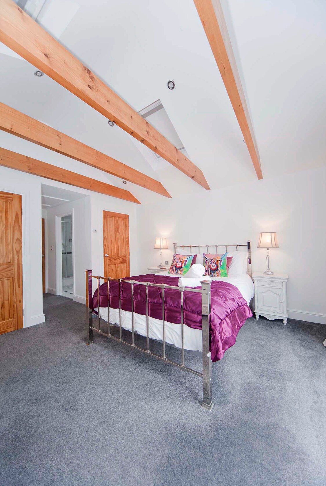 Moderne slaapkamer met tweepersoonsbed, en suite, dicht bij de trein.