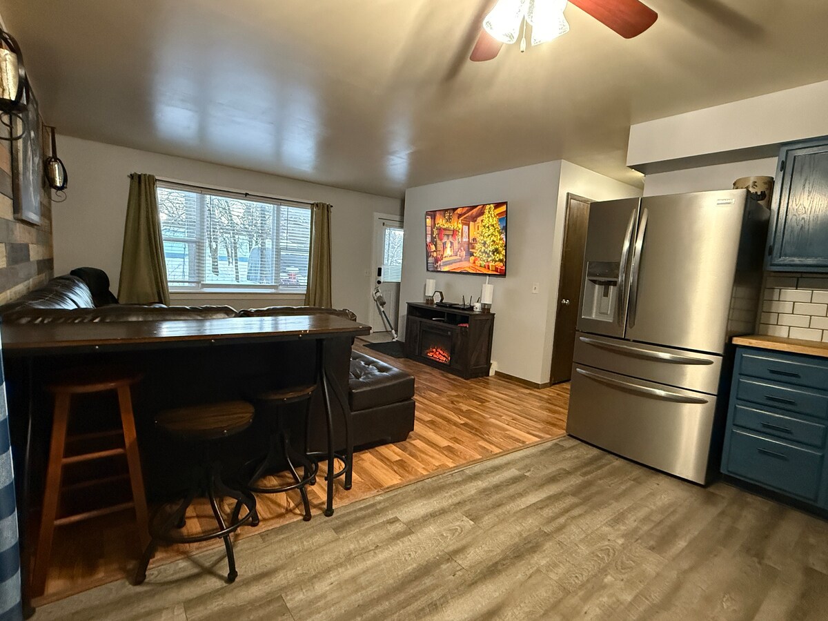 Enjoy your stay just on the outskirts of town in this 2 bedroom, 1 bath duplex. The living room/kitchen is open concept, making it perfect for playing games, watching tv, or just visiting with each other. We're just blocks away from snowmobile trail access. Lakes Nepco and Wazeecha are just a short distance away for ice fishing and cross-country ski trails. Also, we're just minutes from the Rapids sports complex. We live on the property and are available for any questions or suggestions.