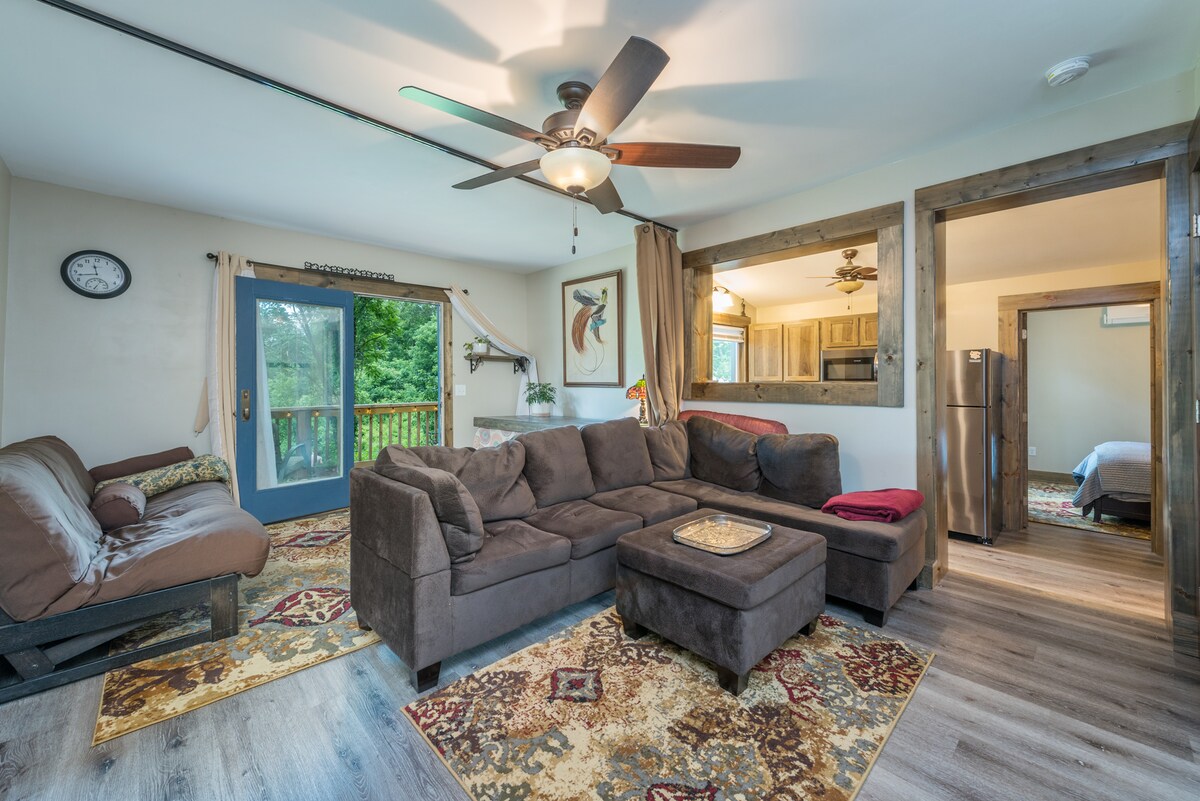Wij zijn een familiebedrijf in een buurt. De ruimte is een mooi, onlangs gerenoveerd, 1-slaapkamerappartement. Ontspan en kom tot rust in deze vredige, stijlvolle ruimte. Tegenover de Blue Ridge Parkway hebben we de aantrekkingskracht van de prachtige bergen in onze achtertuin. * 10 minuten naar Biltmore Village * 10-15 minuten naar het centrum van Asheville *Dicht bij brouwerijen, restaurants, lokale attracties