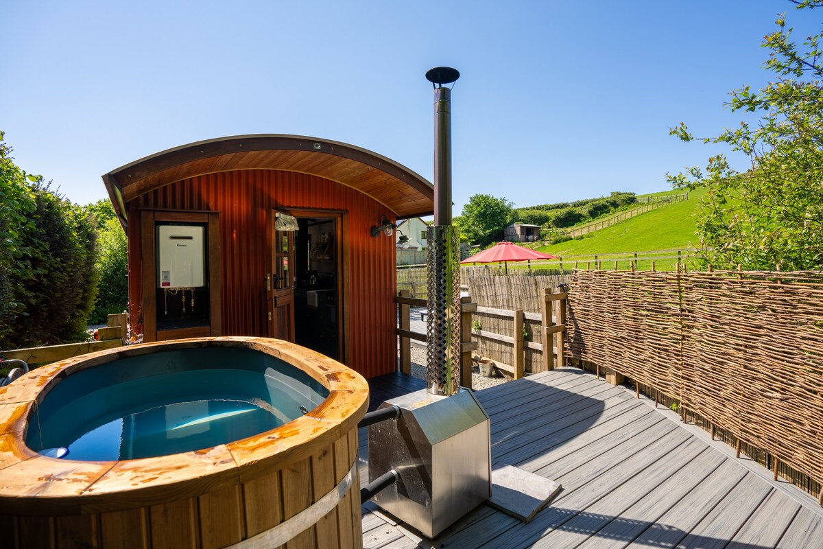 Verblijf in North Hole Farm Holidays in een van de twee herdershutten voor volwassenen op onze boerderij. Met houtgestookte hottub, natte ruimte en kitchenette, gelegen aan een beek, op een boerderij in de buurt van Croyde, met uitzicht op onze alpaca's. Perfect voor mini-maanjes, jubilea, verjaardagen of onderbrekingen van de druk van werk of het stadsleven. Dit is glamping op zijn best, met vloerverwarming, houtkachel, houtgestookt bubbelbad en ligstoelen. Onze locatie is centraal voor surfstranden, mooie dorpjes + kustpad.