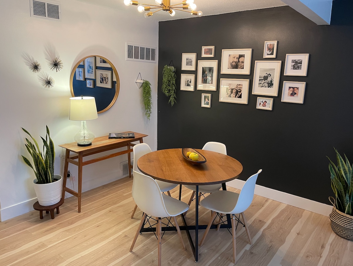 Dit 2+ persoons toevluchtsoord, gelegen in een levendige/eclectische KC-buurt, ligt op loopafstand van Westport/39th St-corridor. Verwacht een eigen ingang op privétuin en parkeergelegenheid op straat; kom en ga wanneer je wilt. Als leuk, eigenzinnig en verzameld je sfeer is, zul je de inventieve manieren waarderen die we hebben gevonden om gewone objecten en hergebruikte gegoten materialen te laten zien; het combineren van de gemakken van thuis met een vleugje moderne boomslagstyling. Lokaal eigendom/dame geëxploiteerd.