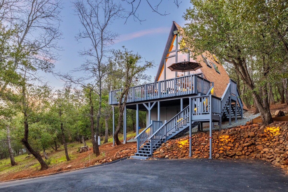 Afgelegen moderne A-Frame hut uit het midden van de eeuw gelegen in de Pine Hills gemeenschap van het historische Julian, CA. De hut werd gebouwd in 1969 en in 2023 werd een renovatie van 2,5 jaar voltooid om aan de moderne smaak en voorzieningen te voldoen, maar de originele groovy sfeer van de jaren 60 blijft behouden. Dit unieke familieverblijf biedt een terras van 84 m², een bubbelbad, vuurplaatsen en een prachtig uitzicht. Julian, op 1,5 uur rijden ten oosten van San Diego, is een klein stadje met grote activiteiten: wandelen, fietsen, vissen, wijnmakerij/brouwerijen, winter sleeën, appeltaart eten.