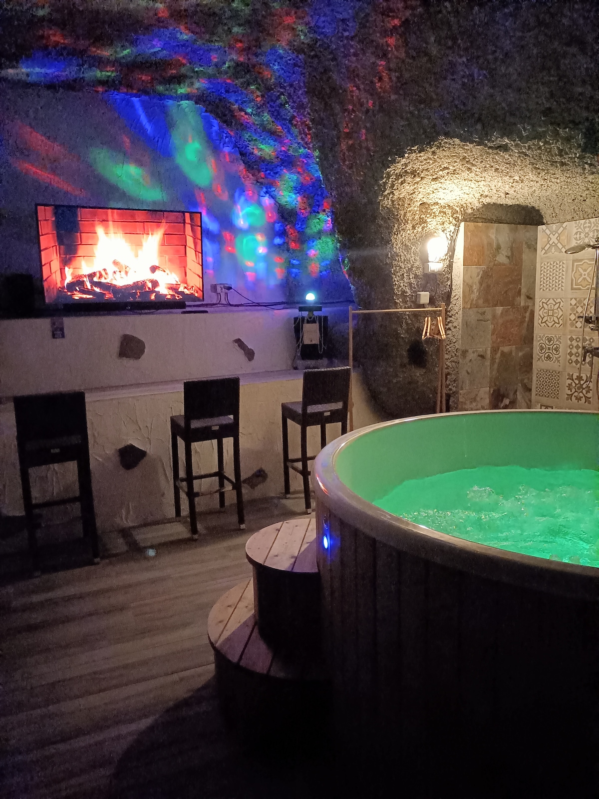 Unieke grotjacuzzi + zwembad bbq