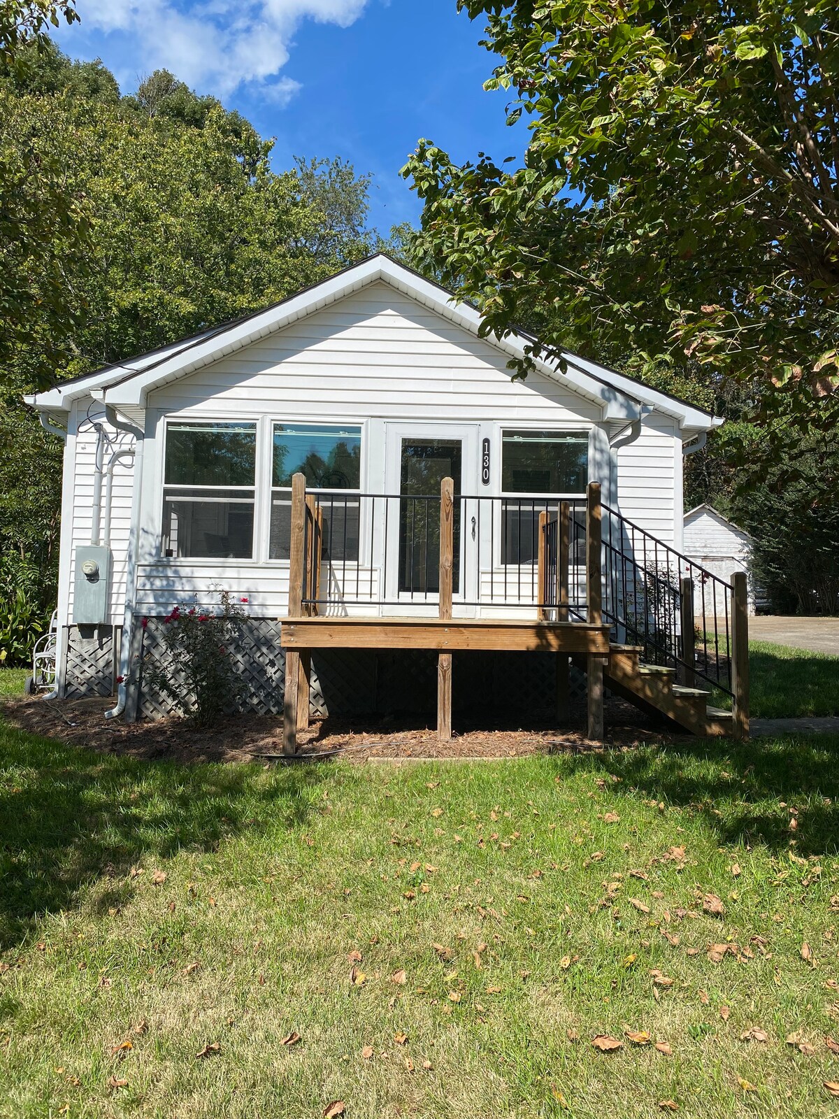 Afgelegen huisje op 8 hectare direct buiten Winston Salem. Het bevat 1 afgesloten slaapkamer met een tweepersoonsbed en pack n’ play indien nodig. Er is een 2e slaapkamer met een queensize slaapkamer en tv. Dit huisje is een geweldige plek om te ontspannen! We zitten dicht bij een paar wijnmakerijen en brouwerijen. Kom genieten van het rustige pand bij de buitenvuurplaats en patio. We hebben een fornuis en broodrooster, maar geen oven.